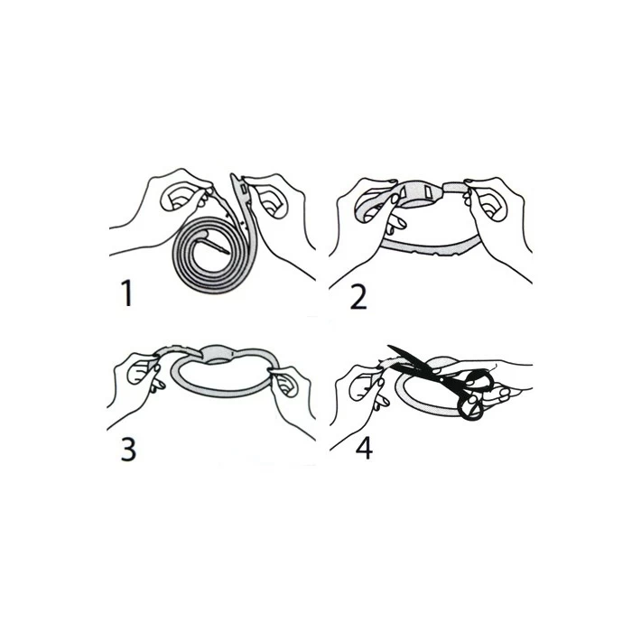 Bevestig de halsband rond de hals van de hond of kat en pas deze dan aan om te passen en snij overtollige lengte af. Doe het voor elk bad weer uit. Vernieuw de kraag om de 4 weken.