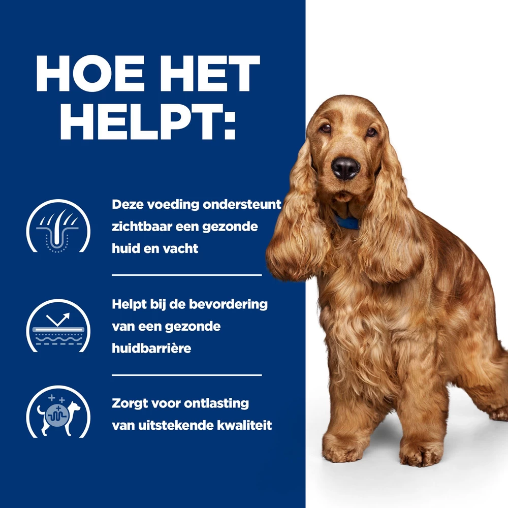 Van z/d is klinisch bewezen dat het de huid- en spijsverteringssymptomen van voedselintoleranties – wat jij dus ziet bij je hond – vermindert. Wees gerust, dit product werkt van binnenuit om de kern van het probleem aan te pakken: een overactieve reactie van het immuunsysteem op bepaald voer. Met voorbewerkte dierlijke eiwitten, antioxidanten, prebiotische vezels en huidvoedende voedingsstoffen.